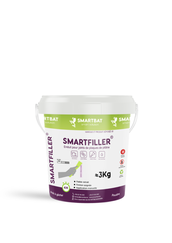 SMARTFILLER 8H est un enduit à joint de plaque de plâtre en poudre, à base de plâtre et de carbonate de calcium, permet le jointement entre deux plaques de plâtre à bord amincis à l’aide d’une bande à joint standard. SMARTFILLER 8H est un enduit prêt à gâcher, très facile à utiliser pour le traitement des joints et des angles des plaques de plâtre.