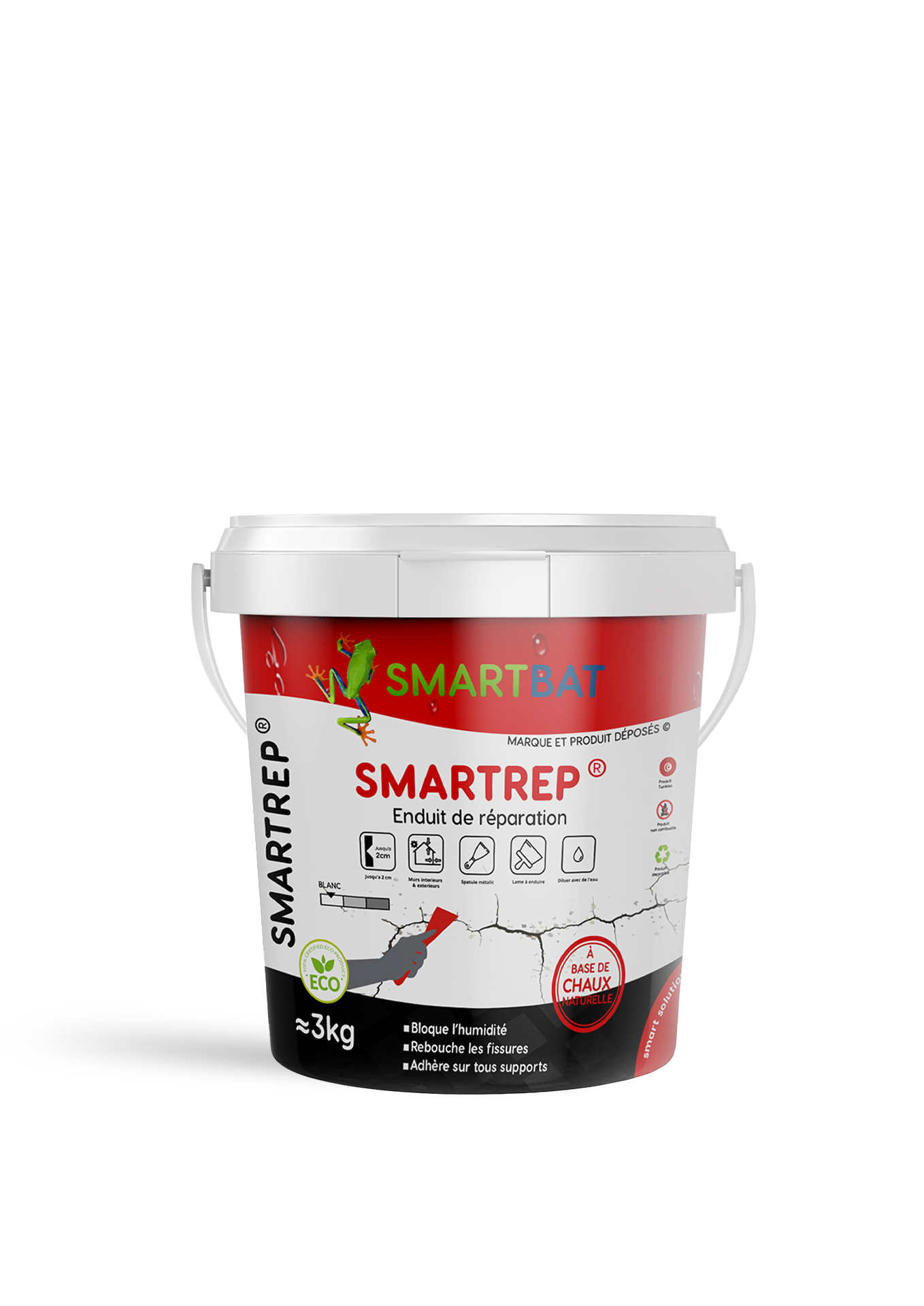SMARTREP est un enduit de réparation à base de chaux naturelle pour les murs et les plafonds, à l’intérieur et à l’extérieur. Il est conçu pour reboucher les trous et les fissures manuellement jusqu’à 2 cm d’épaisseur et pour bloquer l’humidité en laissant respirer le support.